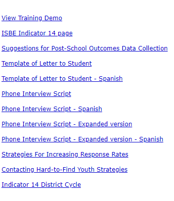 Per Indicator 14 of the State Performance Plan, states are required to collect & report to the US Department of Education on post-secondary education and training and employment outcomes for youth with IEPs for the year after leaving high school.